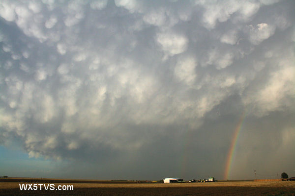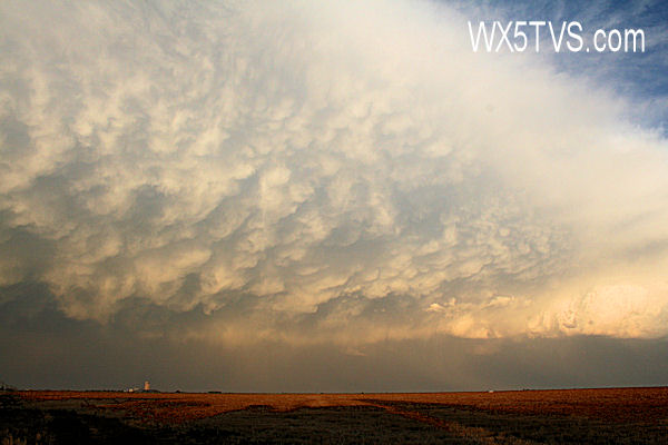 As expected, not a whole lot came from the storms yesterday.  Even though I tried, I couldn’t even find a single piece of hail.  The big show was the mammatus as the sun was setting, which made for some striking contrast.  My friends Steve Miller of the Texas variety and Jason Boggs where out in the area too and got some great mammatus shots of their own from different perspectives.
