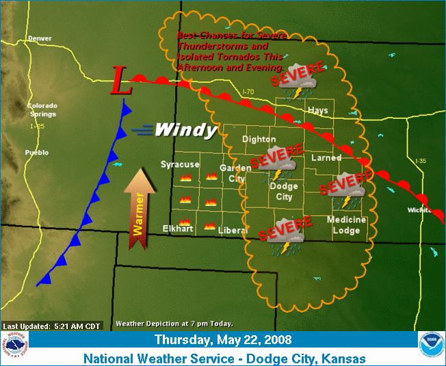 Primarily Kansas (but possibly some of southern NE and western OK) will be under the gun today for a widespread outbreak of severe weather, including some possible strong, long lived tornadoes, courtesy of a huge trough of low pressure across the western U.S. and ample gulf moisture headed north on a 50 knot low level jet.