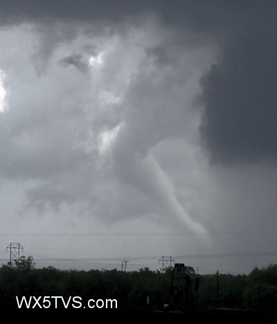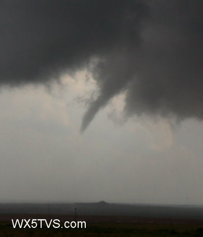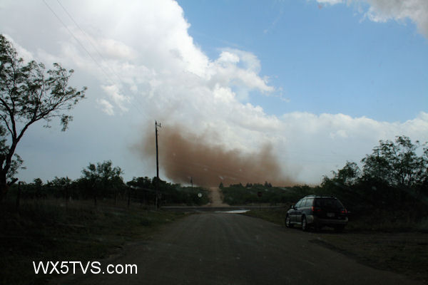 After an exhausting quick trip back to west Texas from where I started in Mineral Well, I intercepted a supercell just north of my target of Big Spring. At first there was a lot of outflow undercutting the base, kicking up some impressive gustnadoes underneath some scary looking dangly, outflow oriented clouds. Unfortunately, someone reported those as tornadoes when they weren’t, even though a couple of them were impressive, including the very large one pictured above.