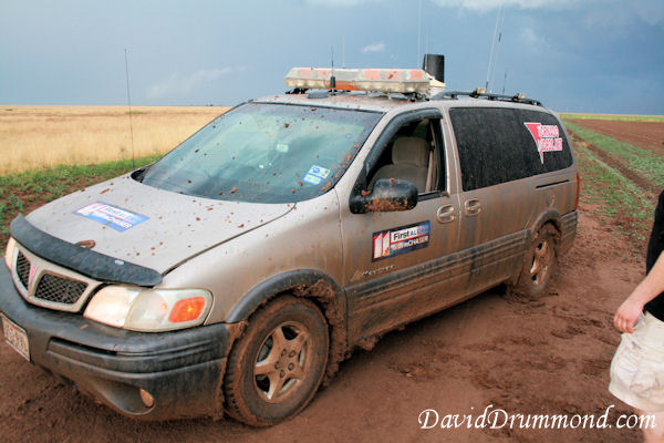 We ended up in what I called a big chaser clusterSTUCK with many storm chasers on some really slick muddy roads and everyone going into the ditch. We somehow managed to stay out of the ditch, and helped some others keep out of it, but ended up stopping and scraping mud out of the wheelwells because it packed in so tight the tires would no longer turn.